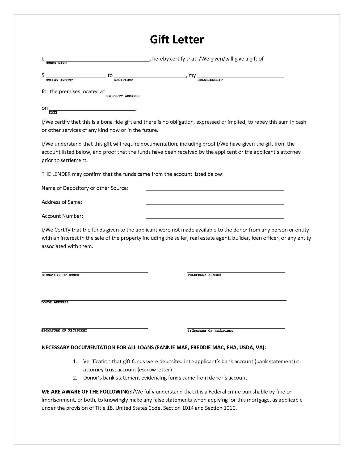 Gift Letter